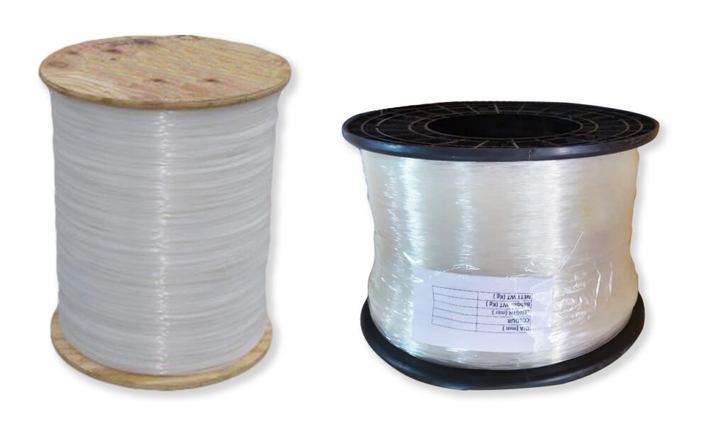 Monofilo in bobine , basso allungamento e alta resistenza all’abrasione .